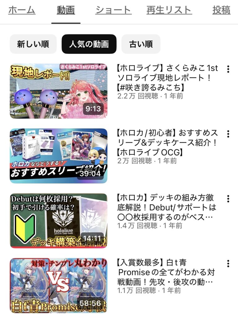 ホロライブオフィシャルカードゲームの対戦動画、新弾開封、デッキ解説などを扱うYouTubeチャンネル。