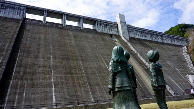 大山ダムや街並みも、作品の始まりのシーンを彷彿とさせる場所として聖地巡礼の定番です。