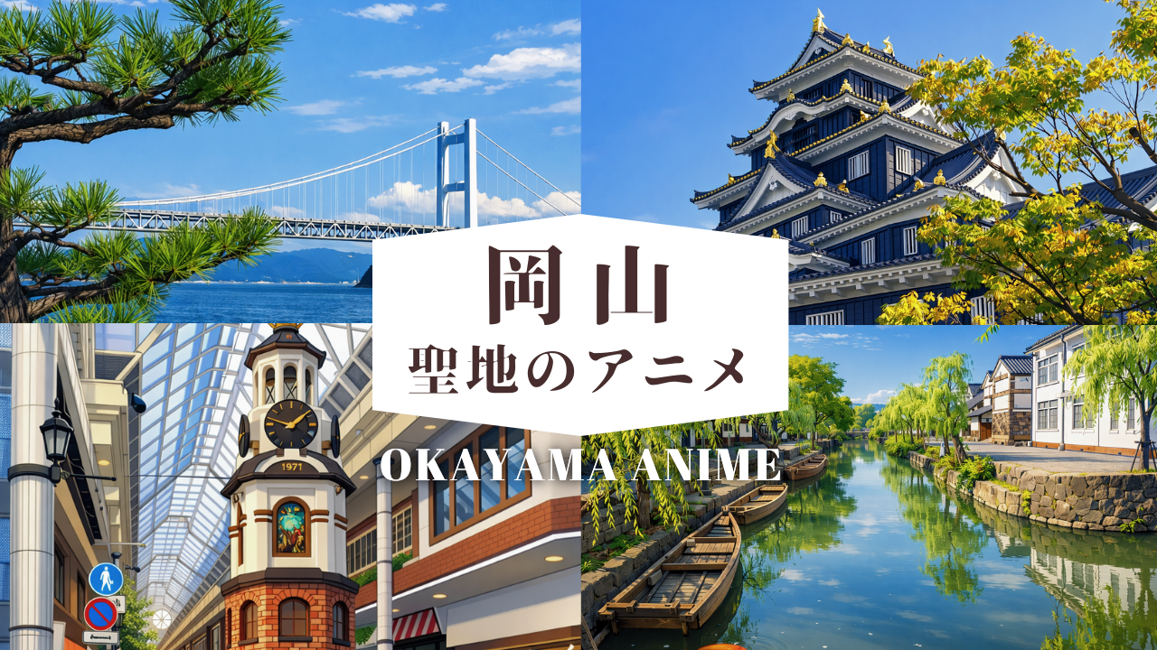 岡山県は瀬戸内海から中国山地まで多様な地形を持ち、アニメ・映画・音楽と幅広いジャンルの聖地が点在する魅力的な巡礼スポットです。